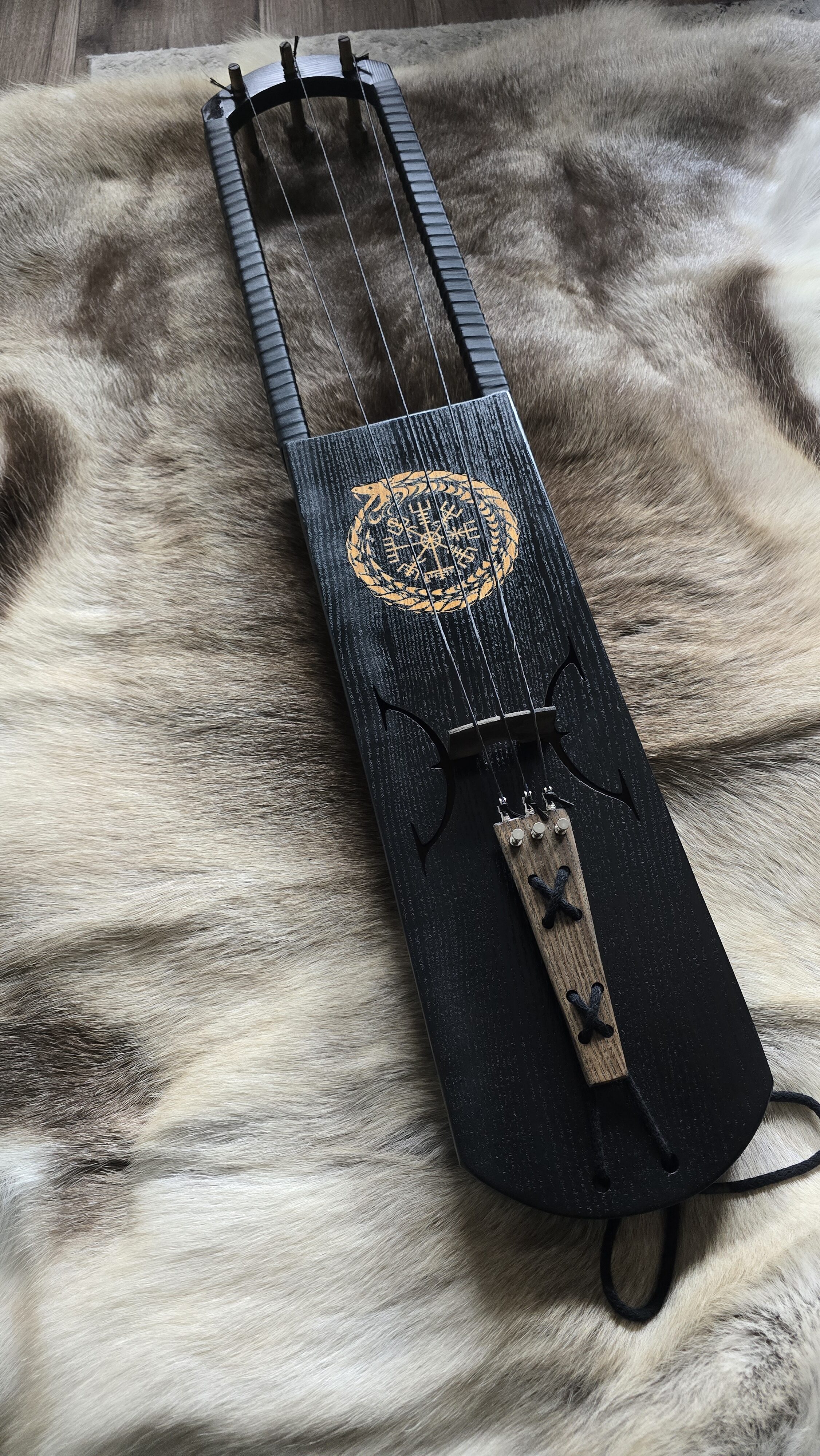 Production time 3-4 weeks.Bassharpa Classic . Size 90* 15 * 6. The body is pine.Deck ash. Details oak. Horse hair strings . Bow as a gift. There is a possibility of making a talharp cover. The sound can be heard
