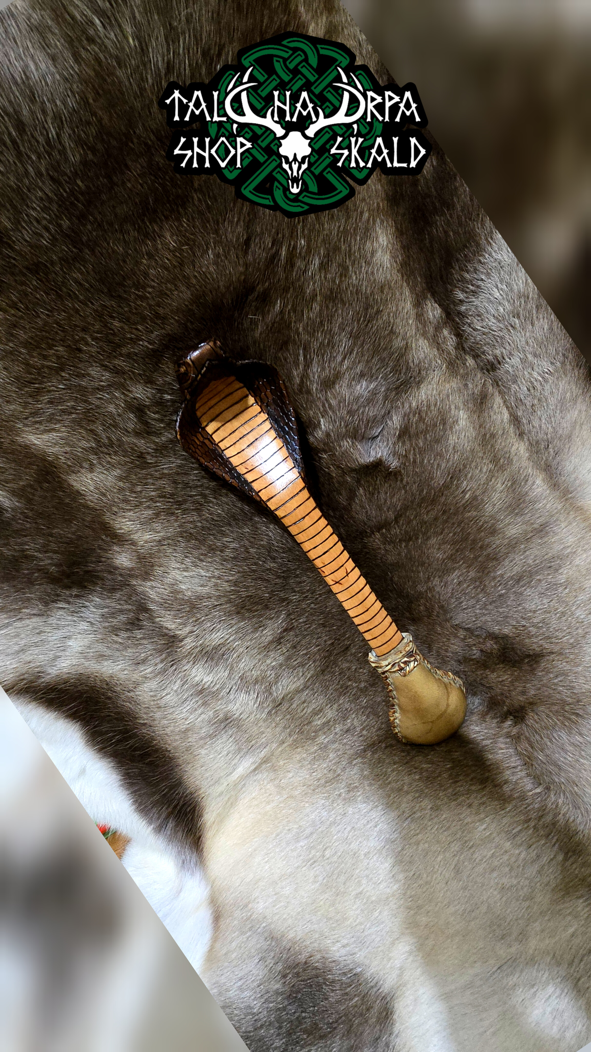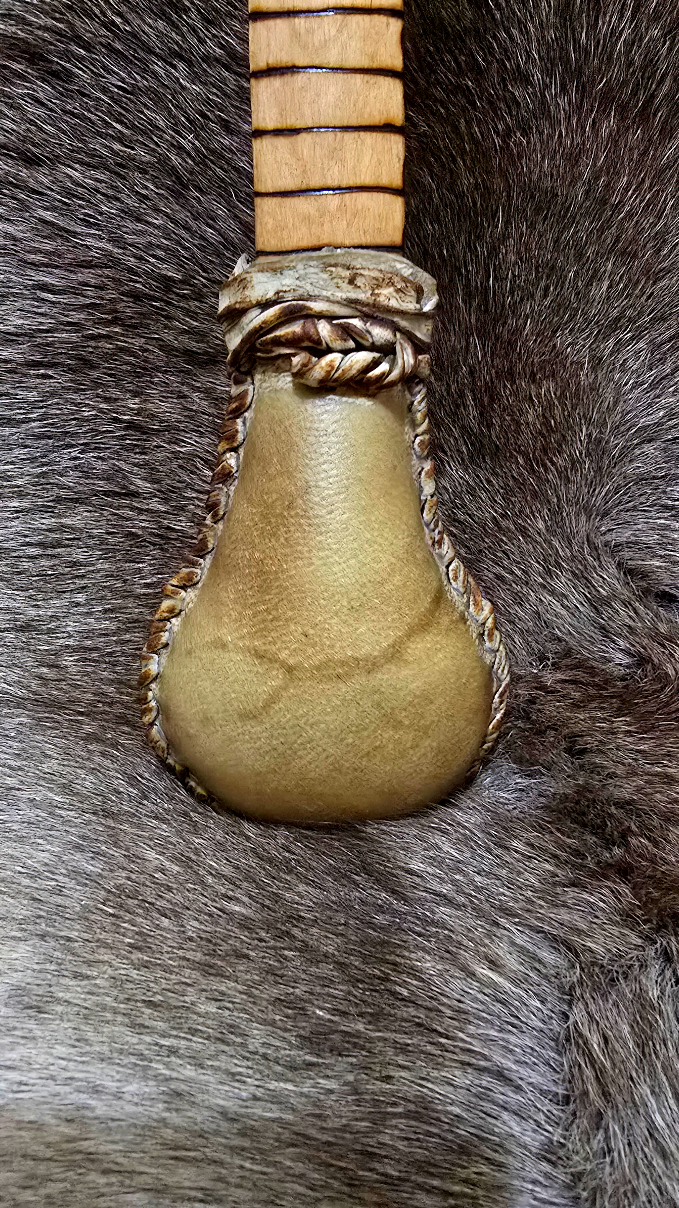 Made of alder wood, the sound bag is made of thick goat skin. Length: 44 cm. Sound here.